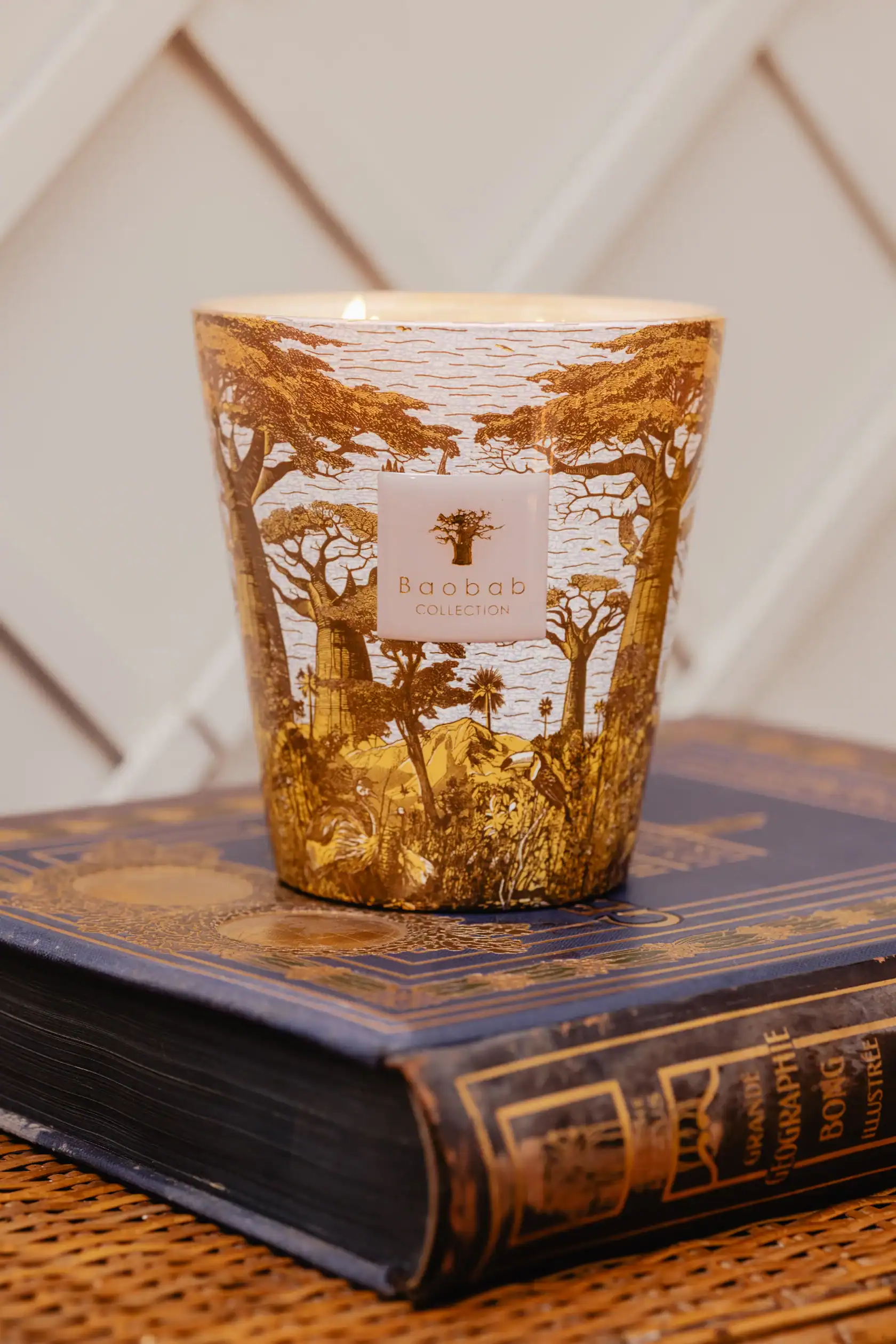 Inspired by the vibrant lands of the Bounkani region of Côte d’Ivoire, the Bounkani scented candle embodies the soul of a land rich in traditions and contrasts. The decor, which pays tribute to the majestic baobab trees, was designed by artists from Uniwax in Abidjan, with whom we have been working since the creation of our social and environmental partnership with the Cœur Vert Foundation.