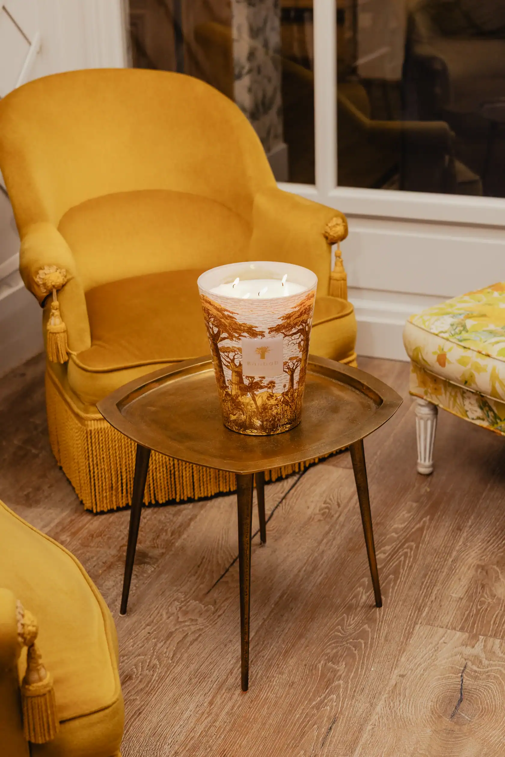 The Bounkani scented candle becomes a decorative object in its own right and an essential piece in our collection. The design, in yellow on a gray background, is probably the most spring-like in this collection.